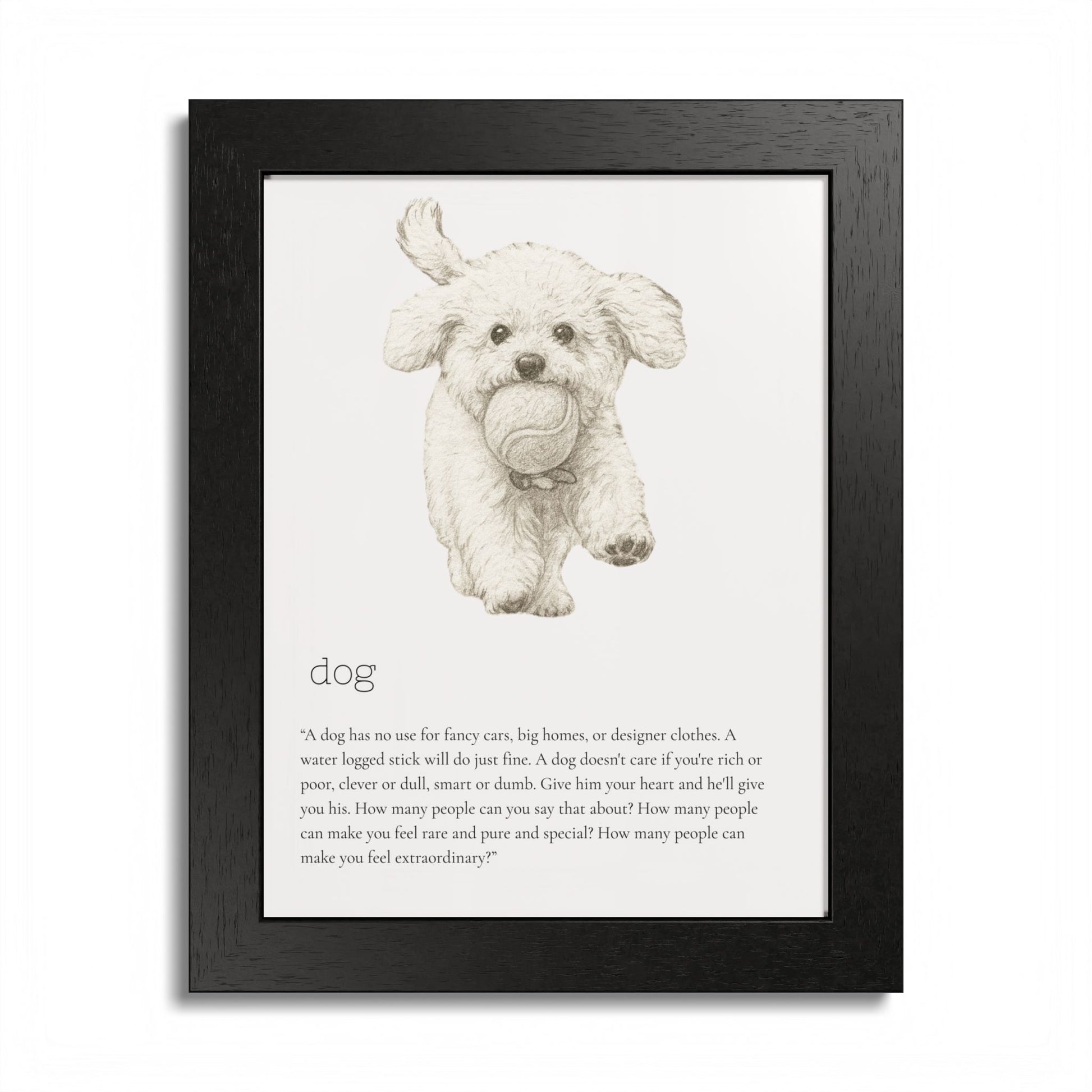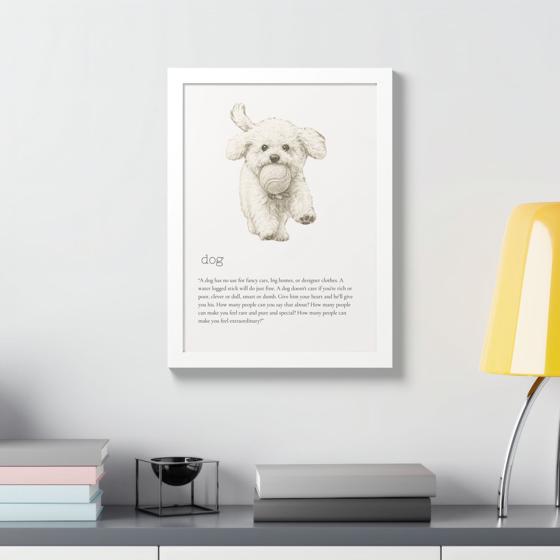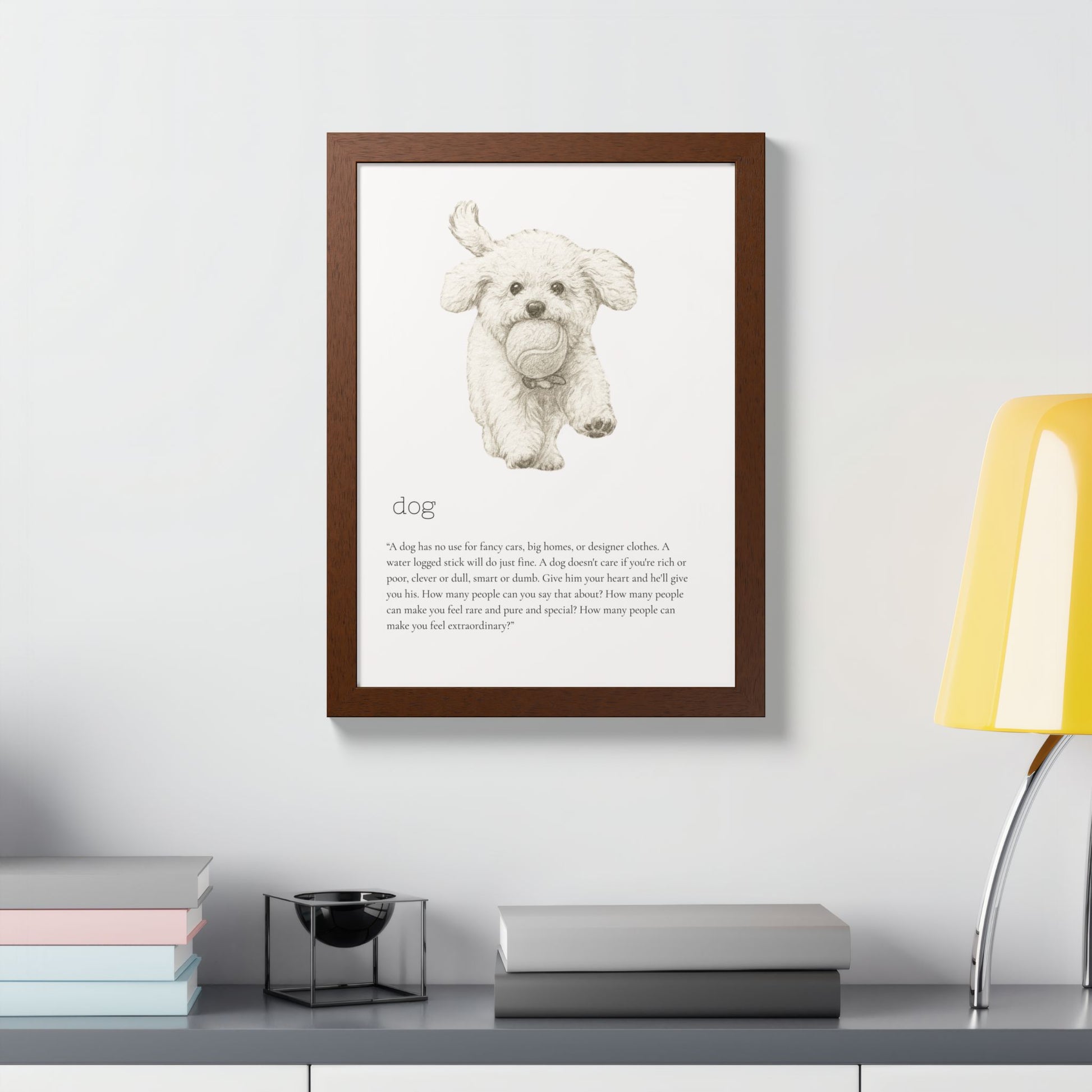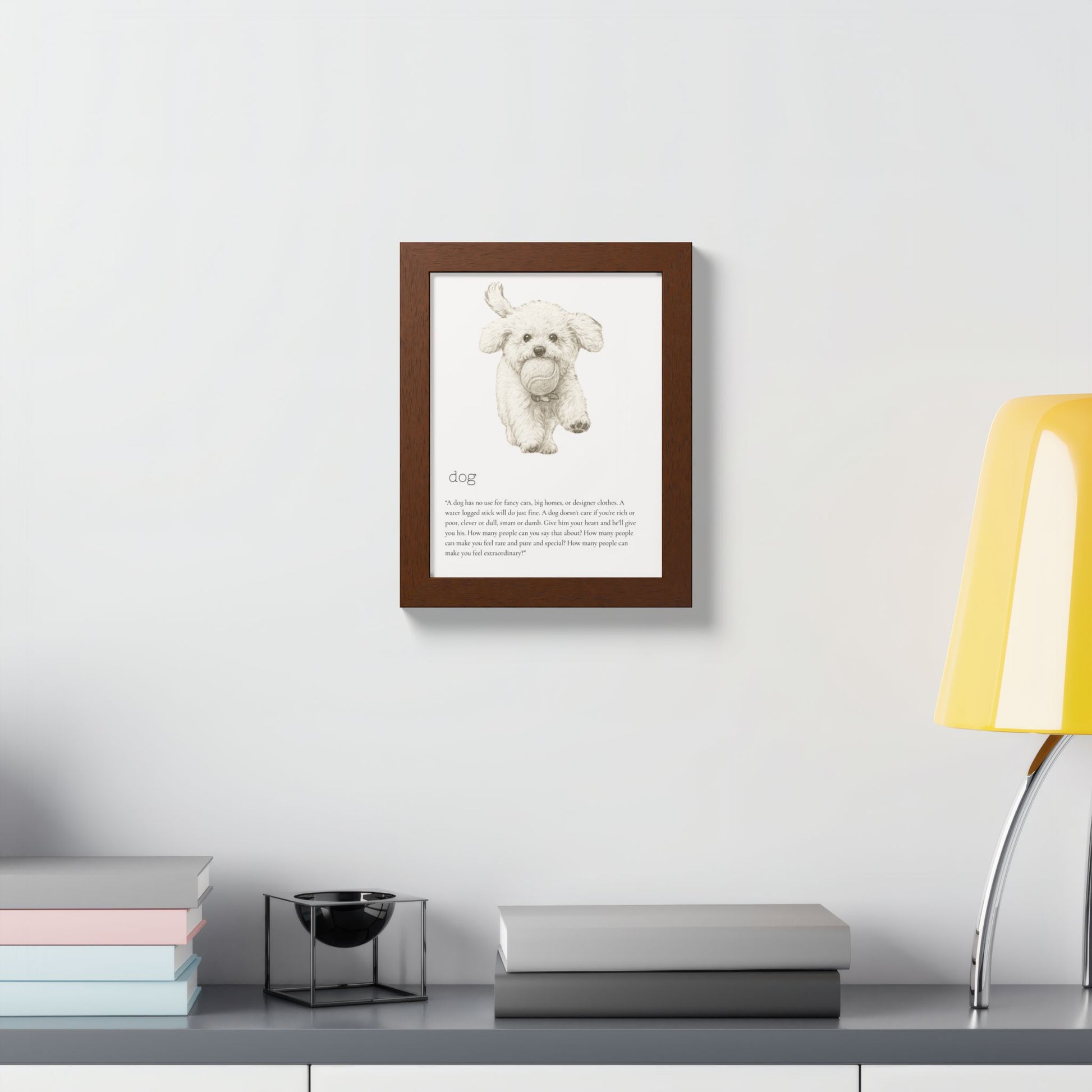 Elevate your space with this stunning framed poster, designed to bring vibrancy and personality to any room. The bright and crisp colors leap off the wall, instantly creating a cheerful vibe that will capture attention and spark joy. Whether it's in a cozy living room, a stylish office, or a child's bedroom, this artwork adds a delightful touch. Ideal for animal lovers, especially dog enthusiasts, this piece is perfect for birthdays, housewarmings, or even as a unique holiday gift. Make your walls speak volumes and remind yourself and your loved ones of the love and fun pets bring to our lives.