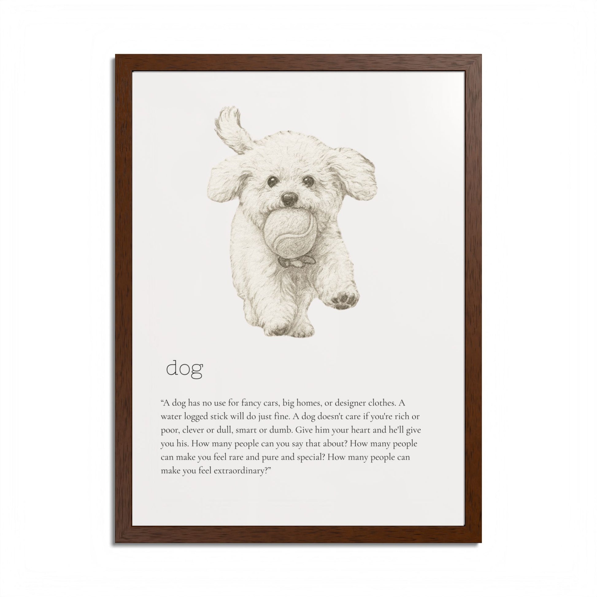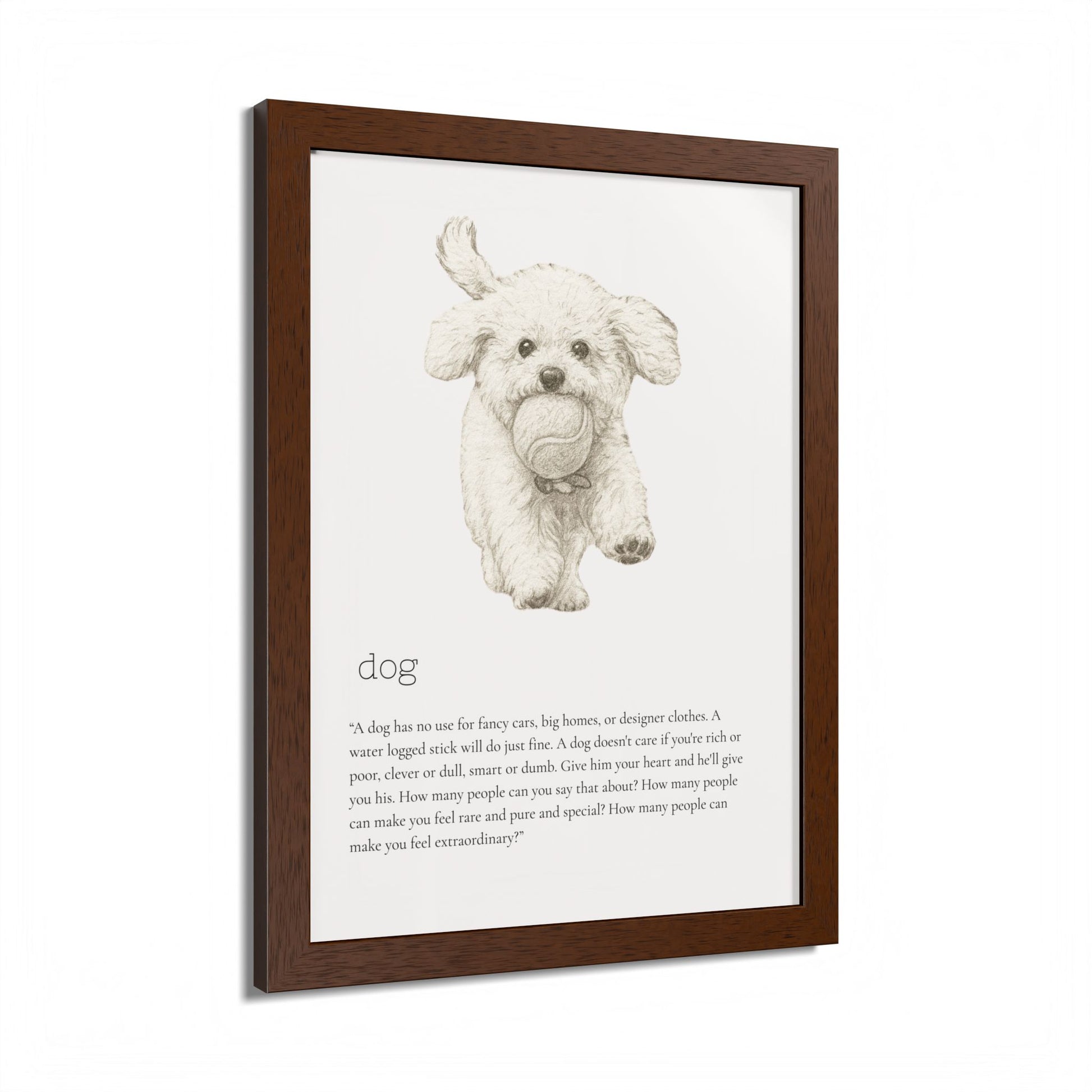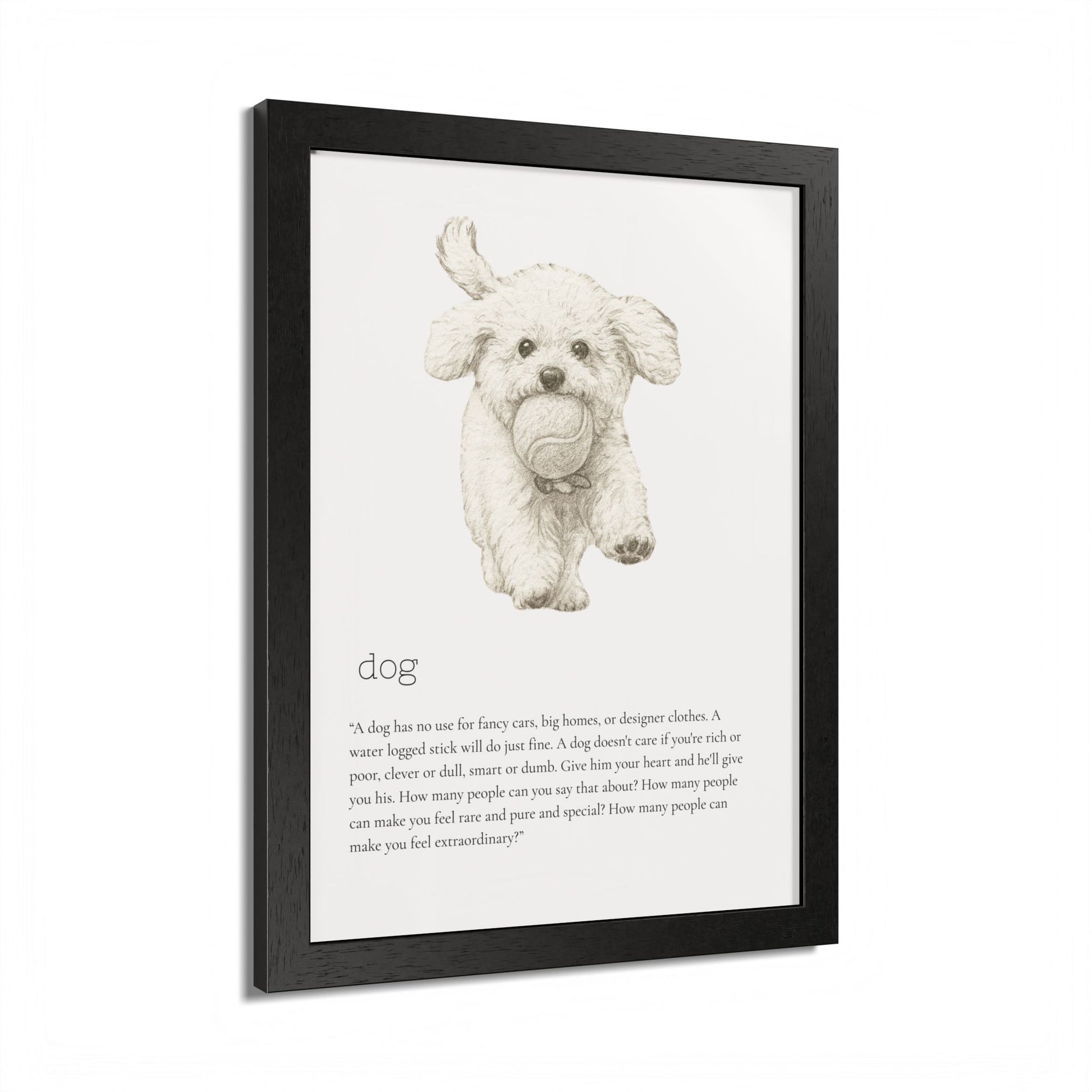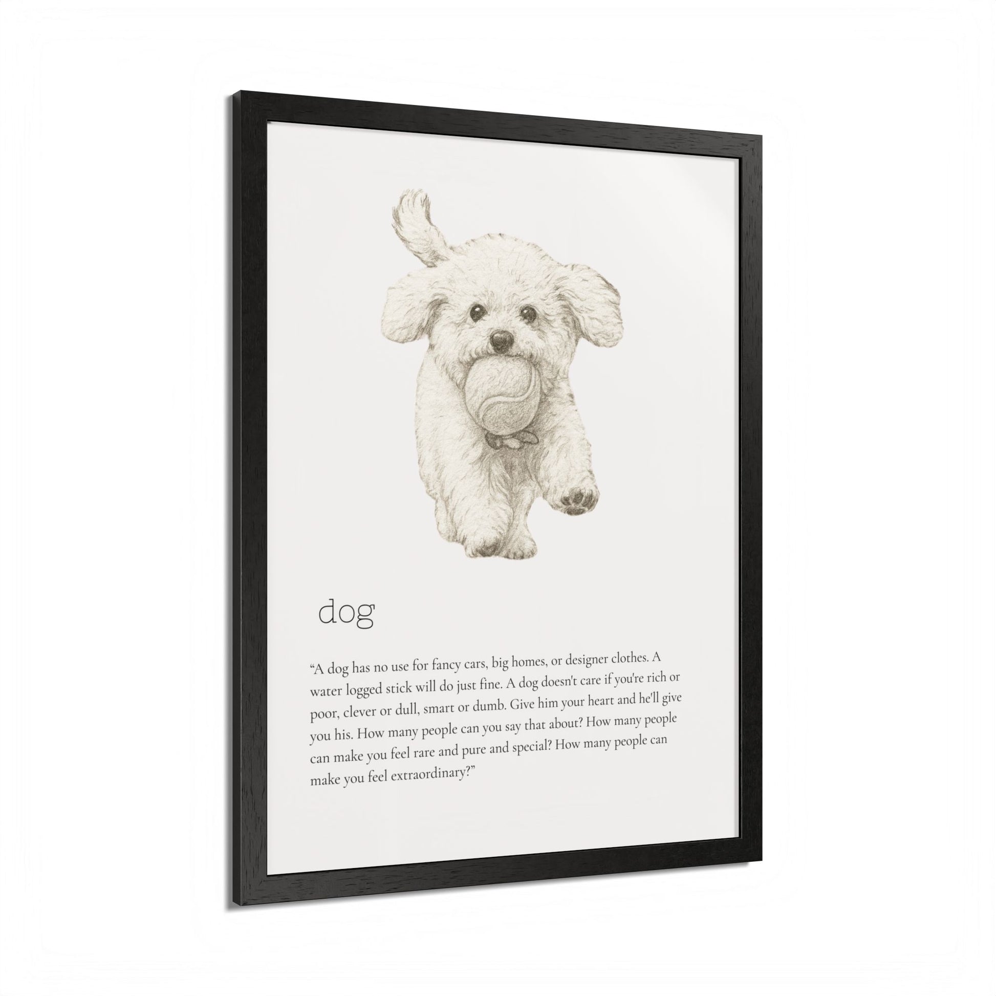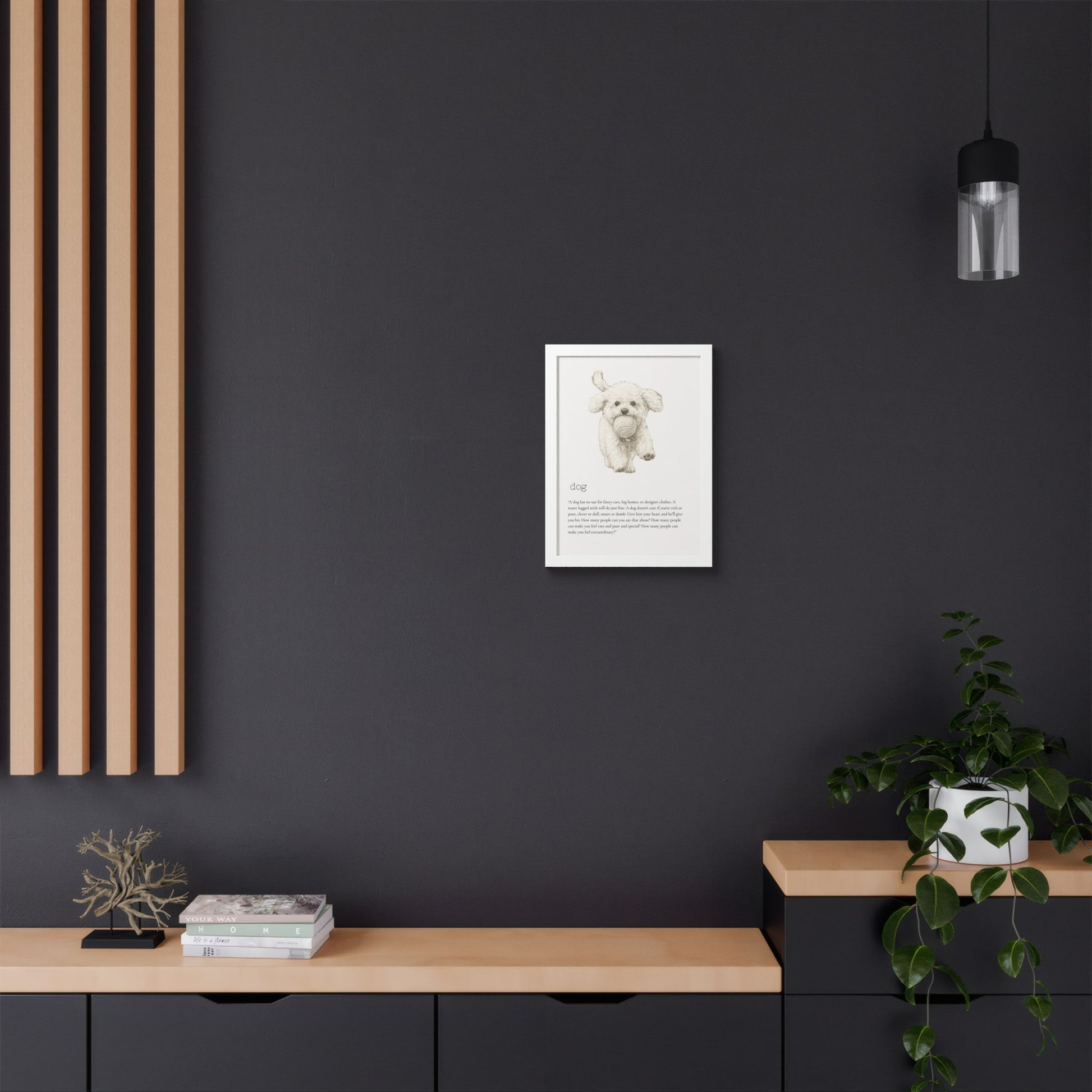 Elevate your space with this stunning framed poster, designed to bring vibrancy and personality to any room. The bright and crisp colors leap off the wall, instantly creating a cheerful vibe that will capture attention and spark joy. Whether it's in a cozy living room, a stylish office, or a child's bedroom, this artwork adds a delightful touch. Ideal for animal lovers, especially dog enthusiasts, this piece is perfect for birthdays, housewarmings, or even as a unique holiday gift. Make your walls speak volumes and remind yourself and your loved ones of the love and fun pets bring to our lives.