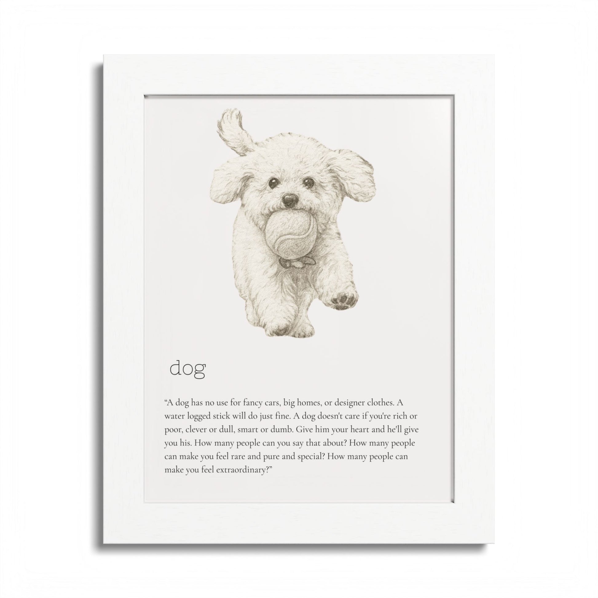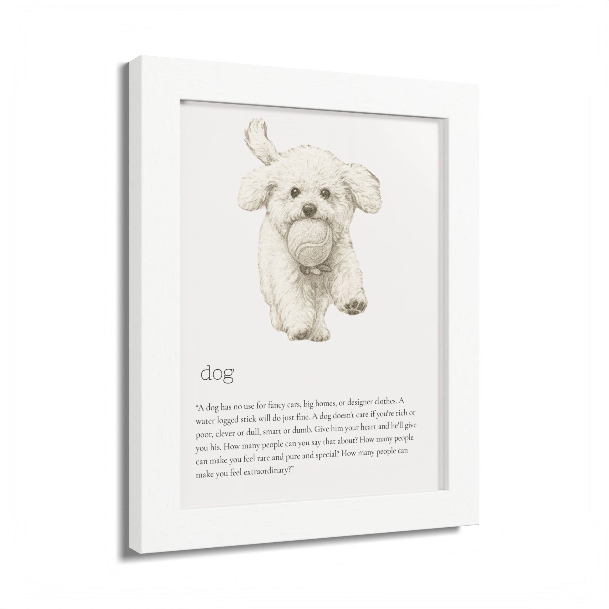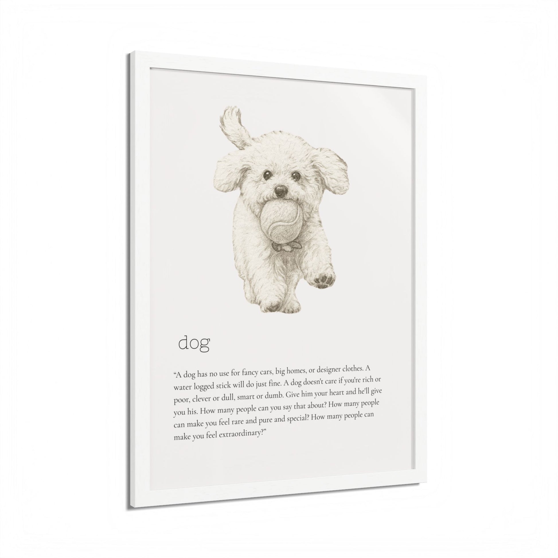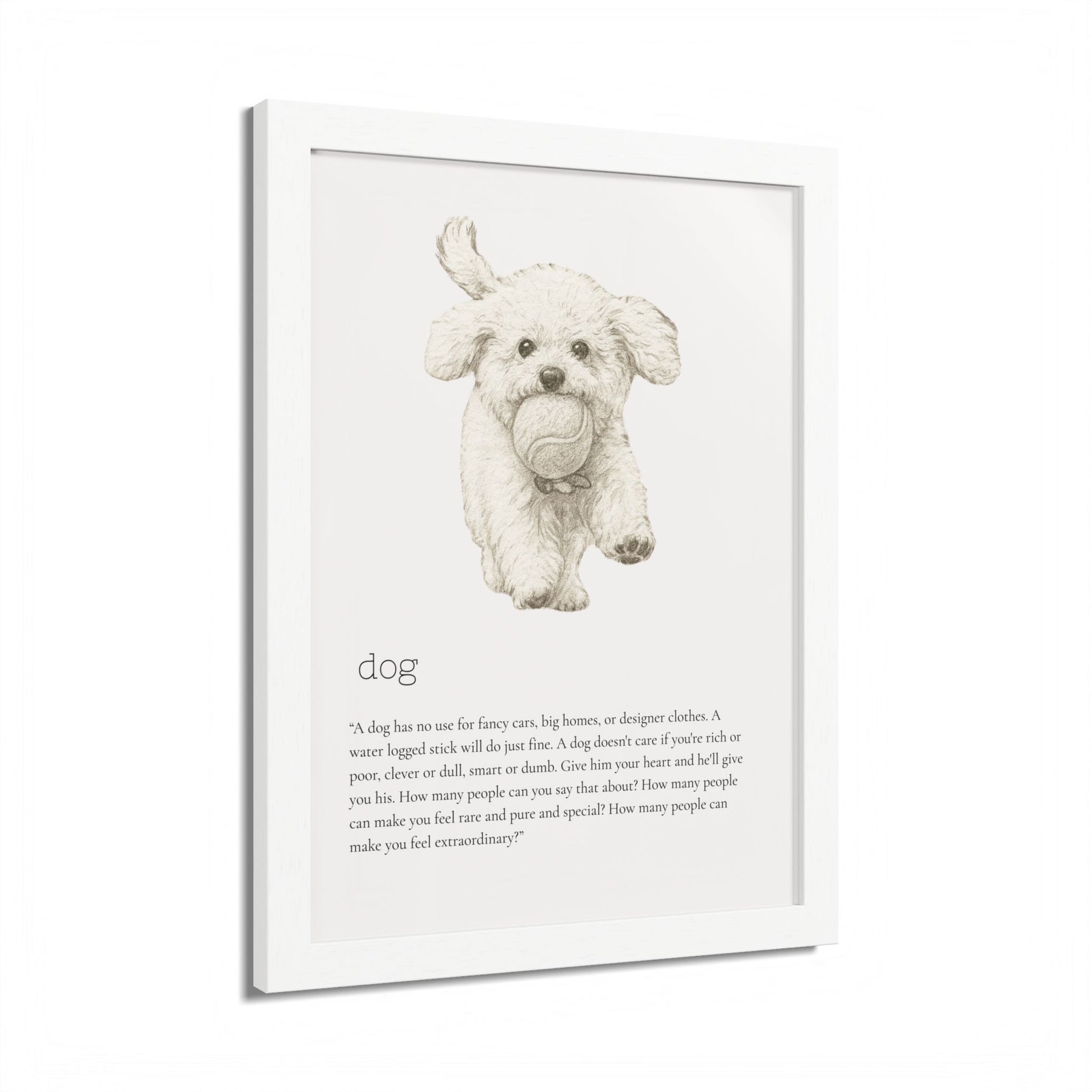 Elevate your space with this stunning framed poster, designed to bring vibrancy and personality to any room. The bright and crisp colors leap off the wall, instantly creating a cheerful vibe that will capture attention and spark joy. Whether it's in a cozy living room, a stylish office, or a child's bedroom, this artwork adds a delightful touch. Ideal for animal lovers, especially dog enthusiasts, this piece is perfect for birthdays, housewarmings, or even as a unique holiday gift. Make your walls speak volumes and remind yourself and your loved ones of the love and fun pets bring to our lives.